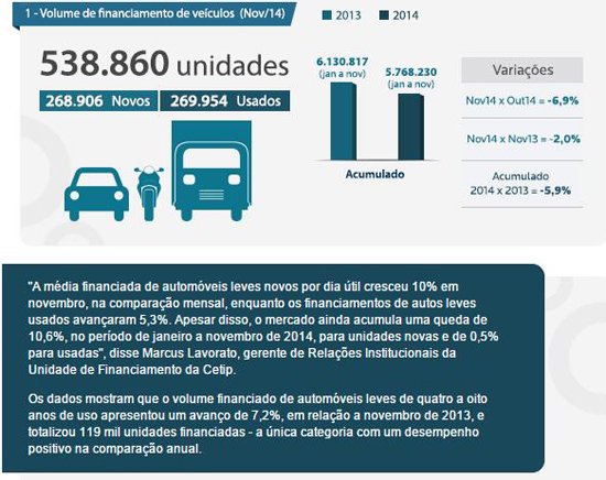 FINANCIAMENTOS DE VEÍCULOS SOMAM 538 MIL UNIDADES EM NOVEMBRO