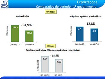 setor exportou 23,5 mil autoveículos - com relação as 52,8 mil de abril de 2013 a redução foi de 30,4%.